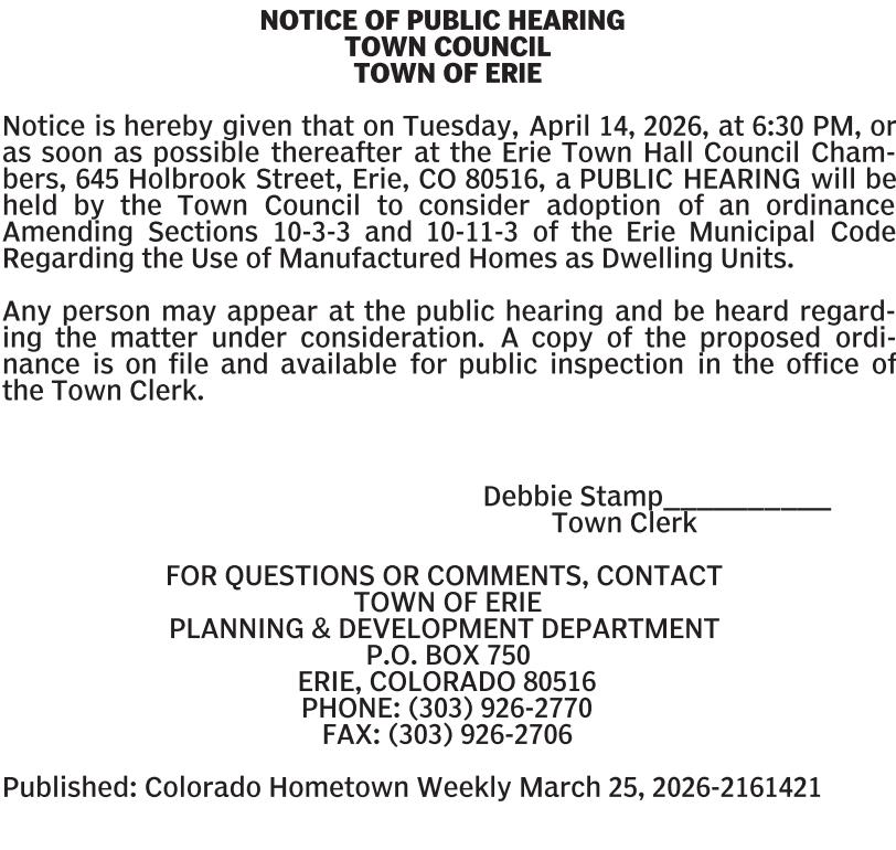 An Ordinance of the Town Council of the Town of Erie Prohibiting the